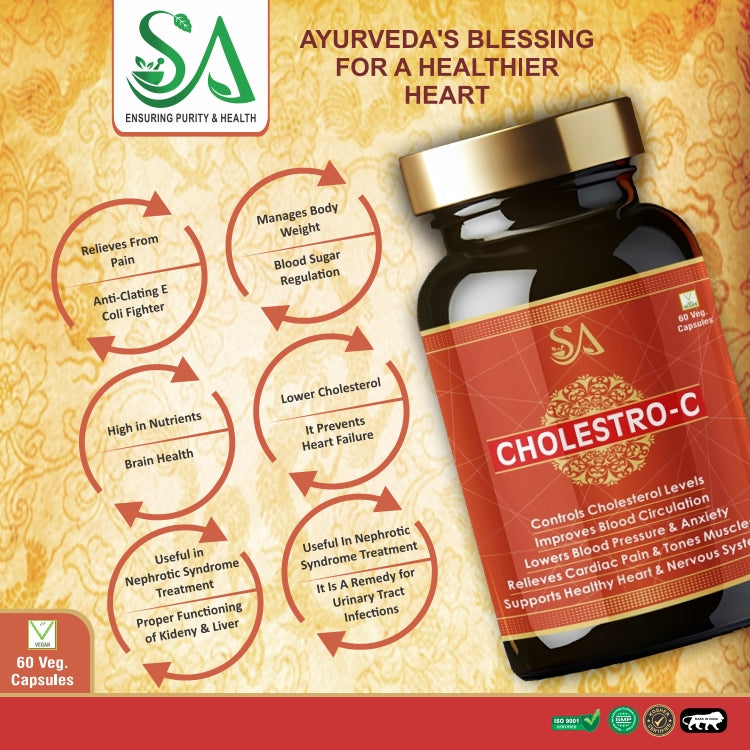 This supplement is specifically formulated with natural ingredients known for their effectiveness in managing cholesterol levels. By incorporating powerful ayurvedic components, it helps maintain a healthy balance in your cholesterol profile, supporting overall cardiovascular health.